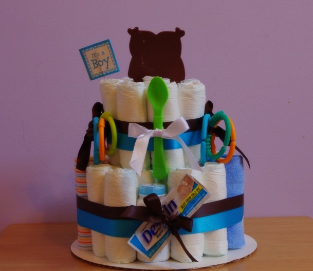 Making diaper cakes is SO much fun for me! All the attention to details, the fun colors, and different decorations combined make the perfect cake. I love to see when each customer is not just satisfied, but excited when they receive their diaper cake! :) Please consider Diaper Cakes by Ericka for your next baby shower gift.